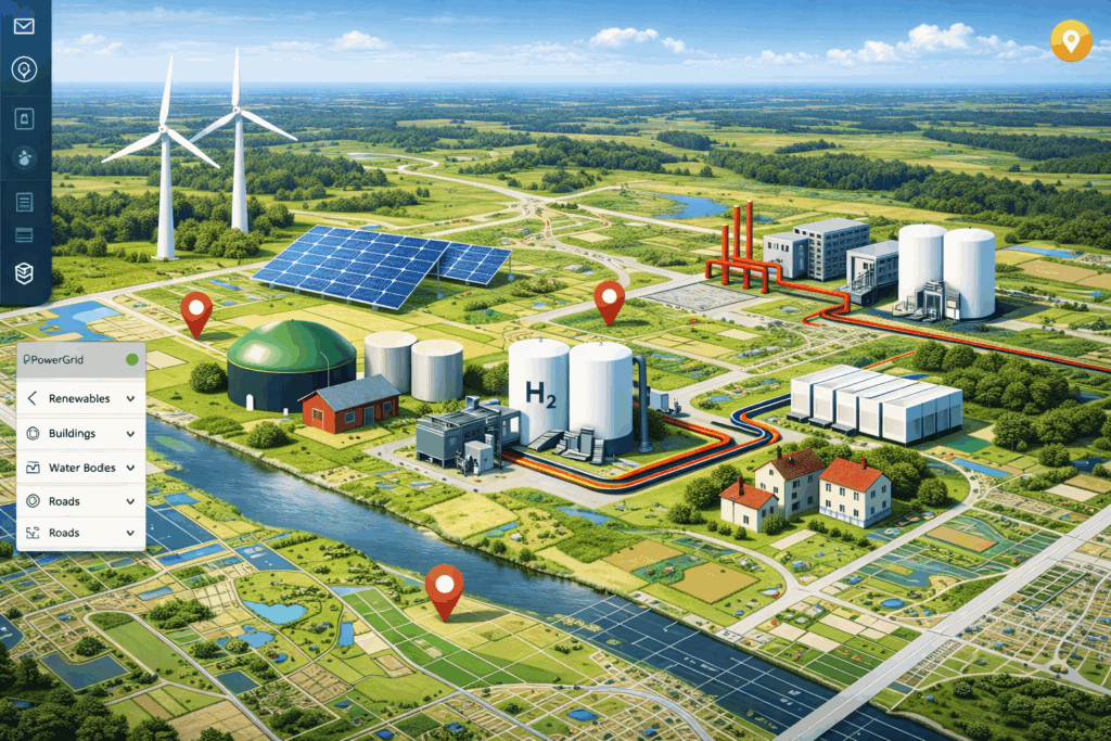 The maps present spatial analyses, data visualizations, and planning tools that support sustainable energy system development and decision-making.